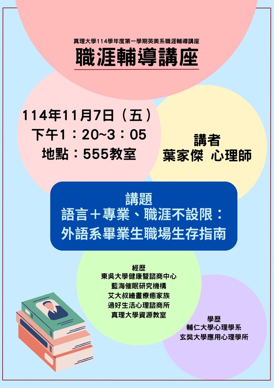 【英美系】職涯講座_語言+專業、職涯不設限: 外語系畢業生職場生存指南